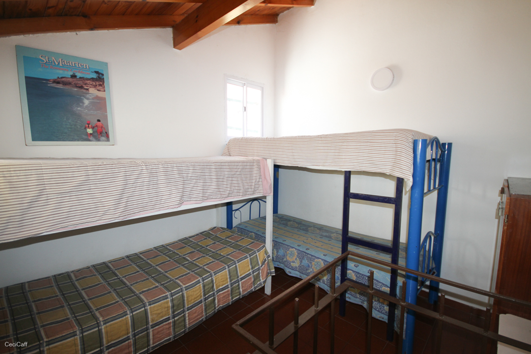 Segundo dormitorio en planta alta por escalera caracol dos cuchetas con colchon de espuma.