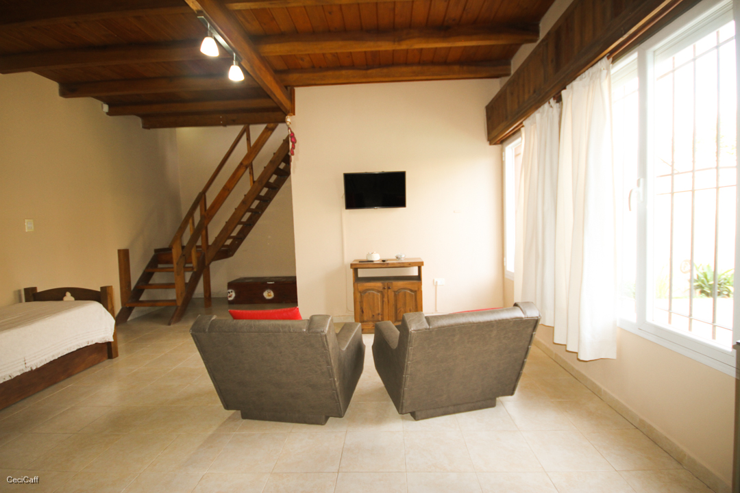 Dormitorios : Uno , Cama Matrimonial, Una Cama de Una Plaza ( Planta Alta) Aire Acondicionado , Tv Smart 32″