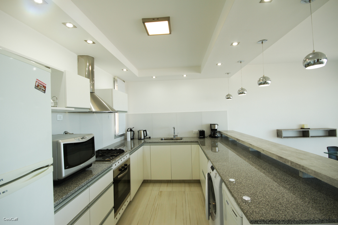 • Cocina Totalmente Equipada, Cuenta con Heladera con Freezer, Horno Eléctrico , Cafetera, Licuadora y Pava Electrica. Vajilla completa de Vidrio. Lavavajillas , Lavarropas .