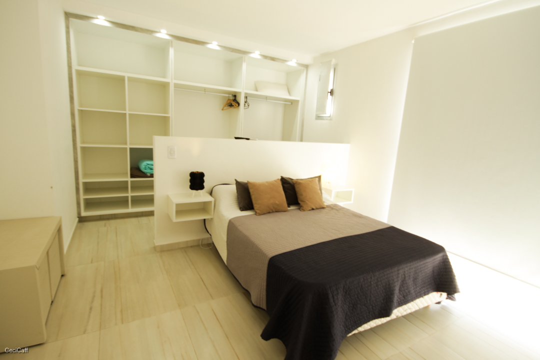 • Un Dormitorio Principal Con Sommier Matrimonial de Dos Plazas T.V,  Ventanal con Black Out . Vestidor integrado al Dormitorio.